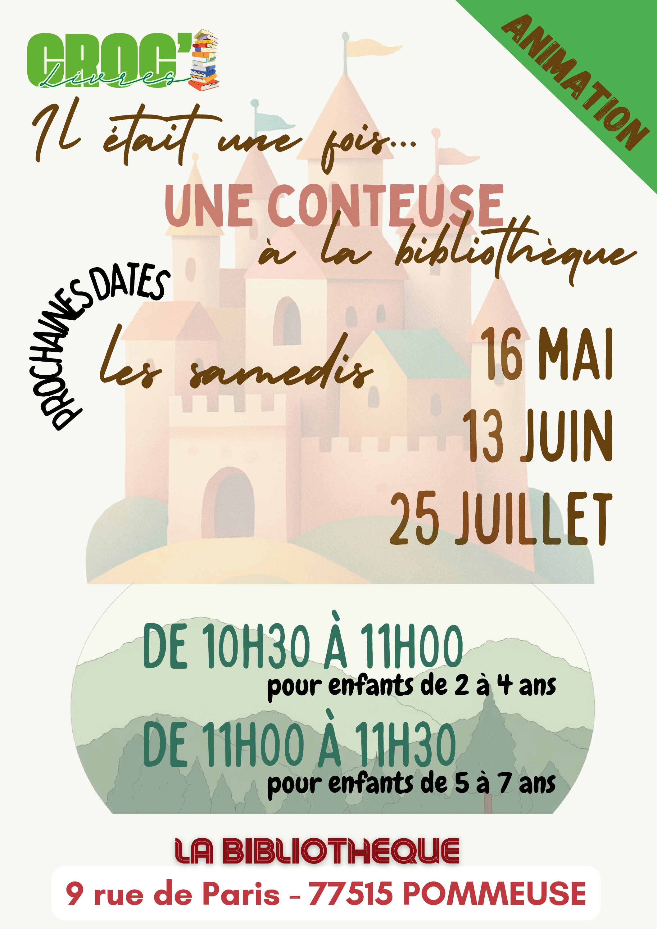 BIBLIOTHEQUE Horaires MERCREDI 10h-12h / 14h-17h VENDREDI 15h-18h SAMEDI 9h30-12h30